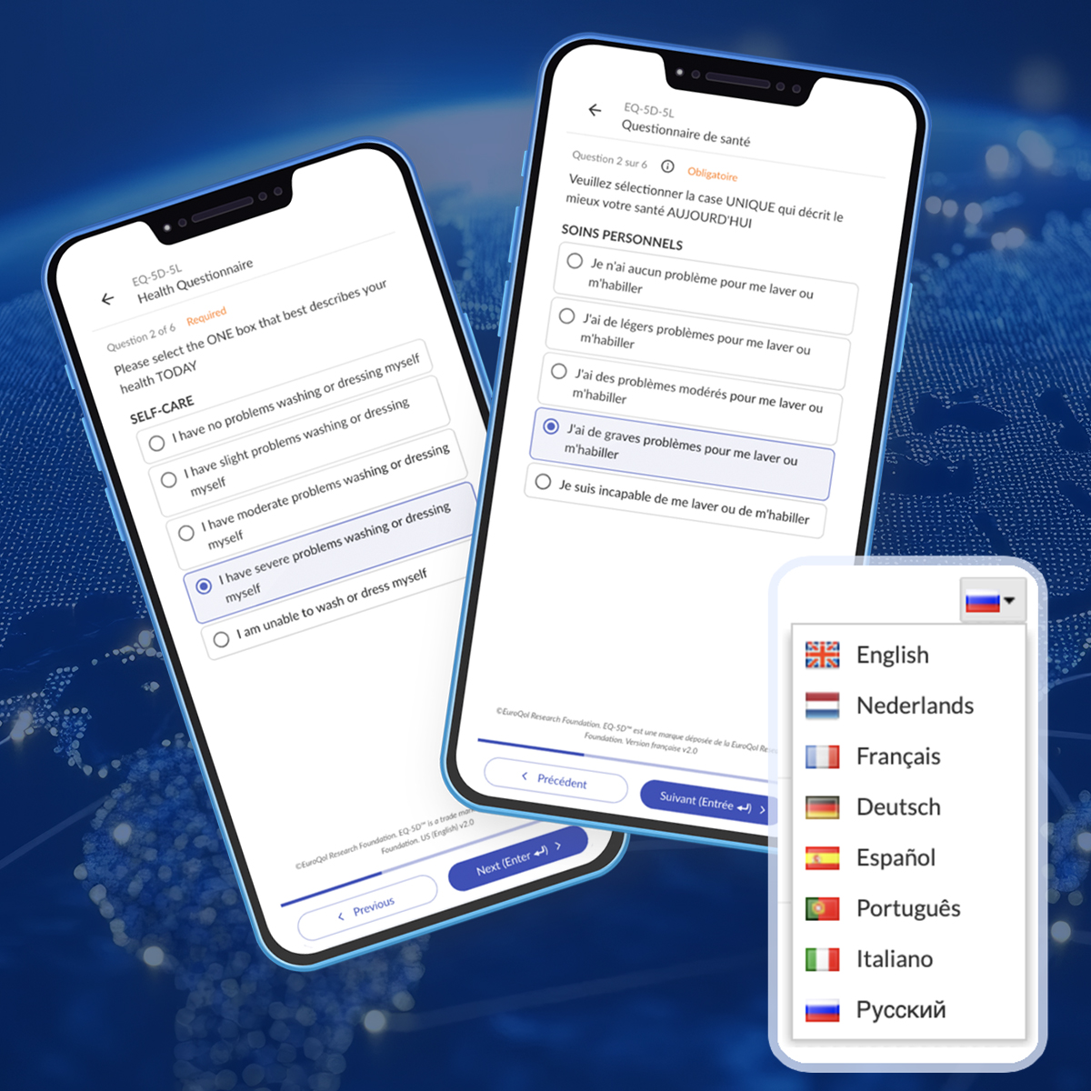 Access reusable, pre-approved PRO instruments to accelerate study builds and ensure quality (EQ5D-5L, SF36, EORTC, FACIT, SNOT, PHQ9, and more)